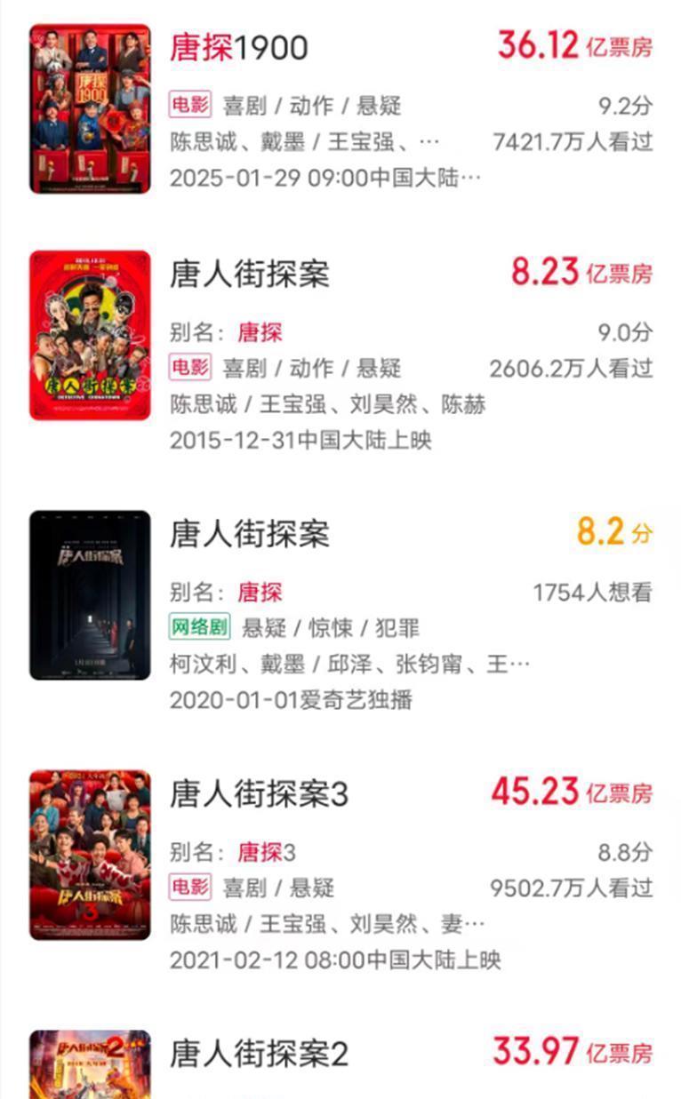 在当时同质化严重的市场中,他敏锐地察觉到观众对更复杂叙事和更强娱乐性的双重渴望。十年间,四部《唐探》系列电影豪取超123亿票房,构建起中国首个真正具备宇宙观的电影IP。这个IP不仅在大银幕上生生不息,更通过网剧等形式二度传播,获得了流量与口碑的双丰收。