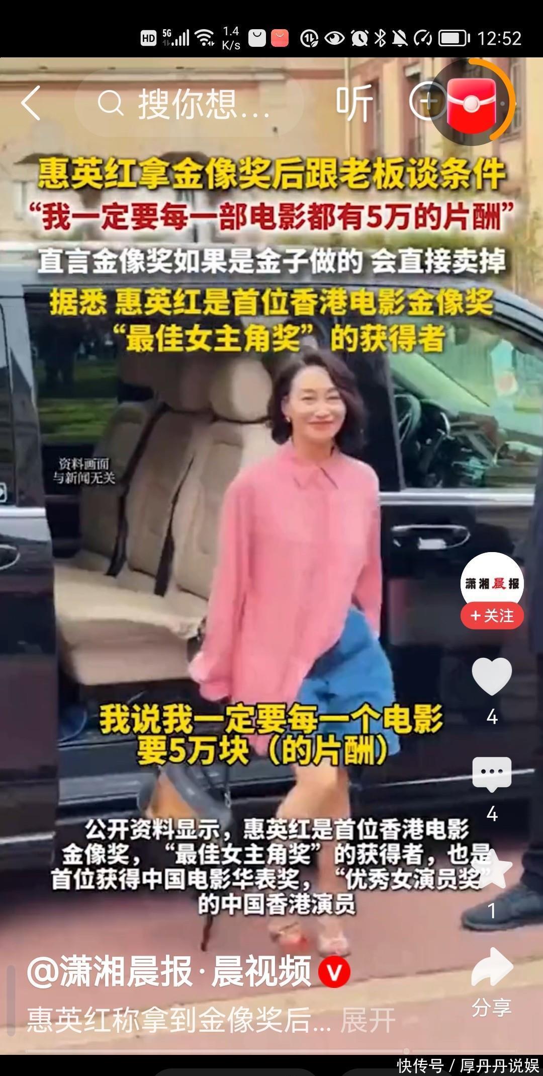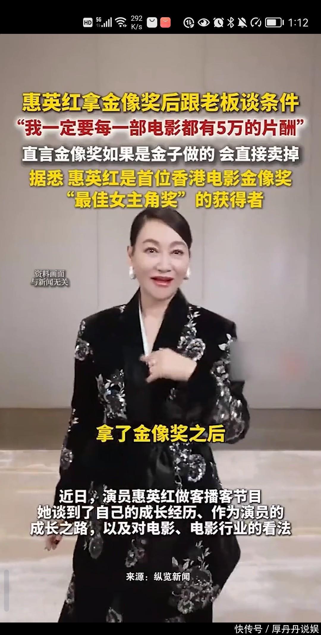 哎呀,谁能想到呢?四十年前香港电影圈的一场“片酬谈判”,至今听来仍让人热血沸腾!就在近日,影后惠英红在一档播客节目中爆料,自己在1982年凭借电影《长辈》荣获首届香港电影金像奖最佳女主角后,第二天就直奔老板办公室谈条件,开口要求“每部电影片酬必须5万港币”。这番操作,连网友都直呼:“红姐,太飒了!”